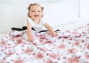 • Details: Blush and mauve blossoms adorn this adorable blanket. This blanket is backed with an apricot vanilla plush minky fabric and bordered in a black satin ribbon.