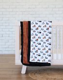 Bulldozer features a lively mix of excavation equipment. Including mixers, bulldozers, and excavators, on a crisp white background, making it a fun choice for little construction fans. This blanket is backed in a hazelnut plush minky with a black satin ruffle.