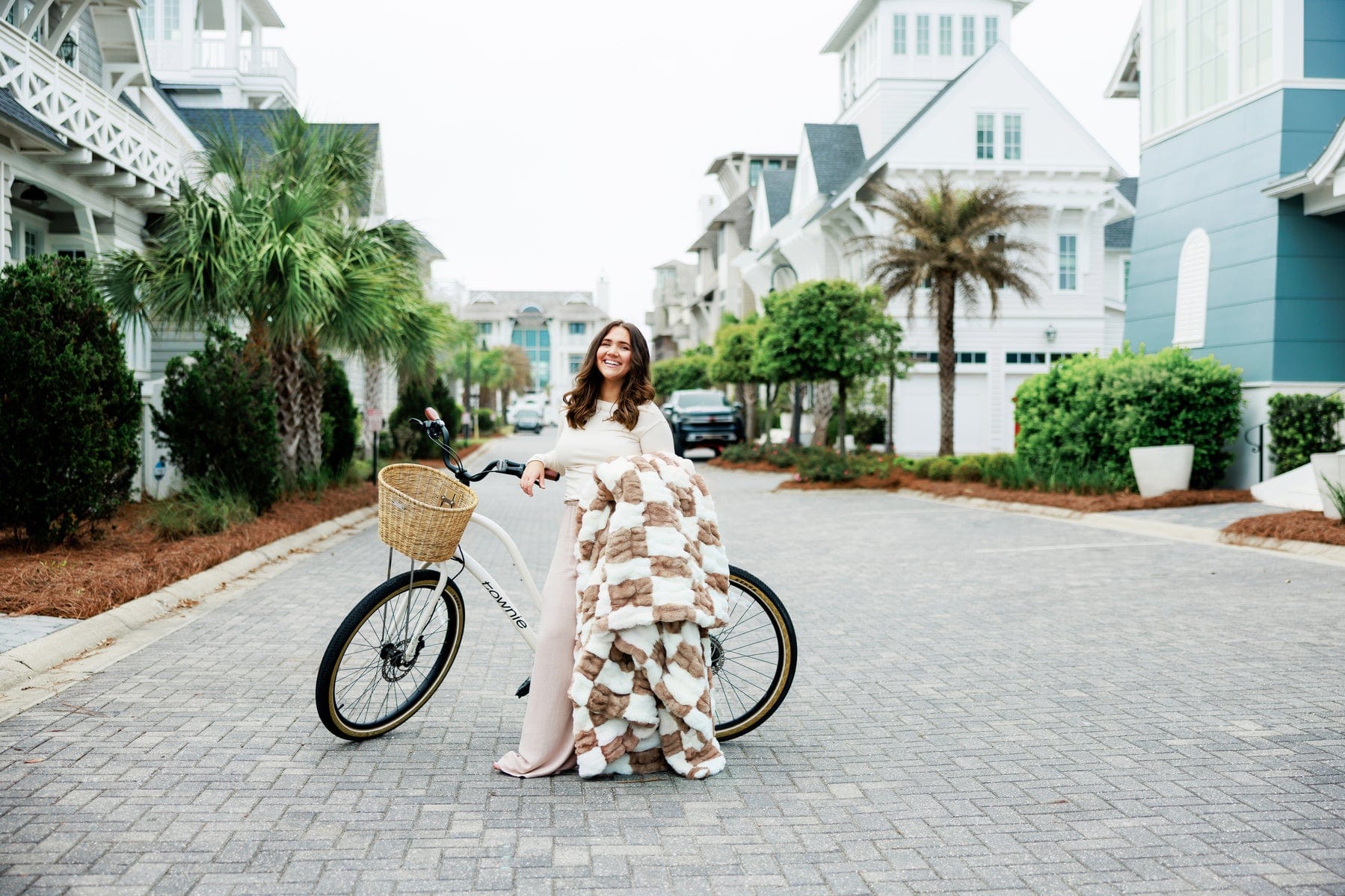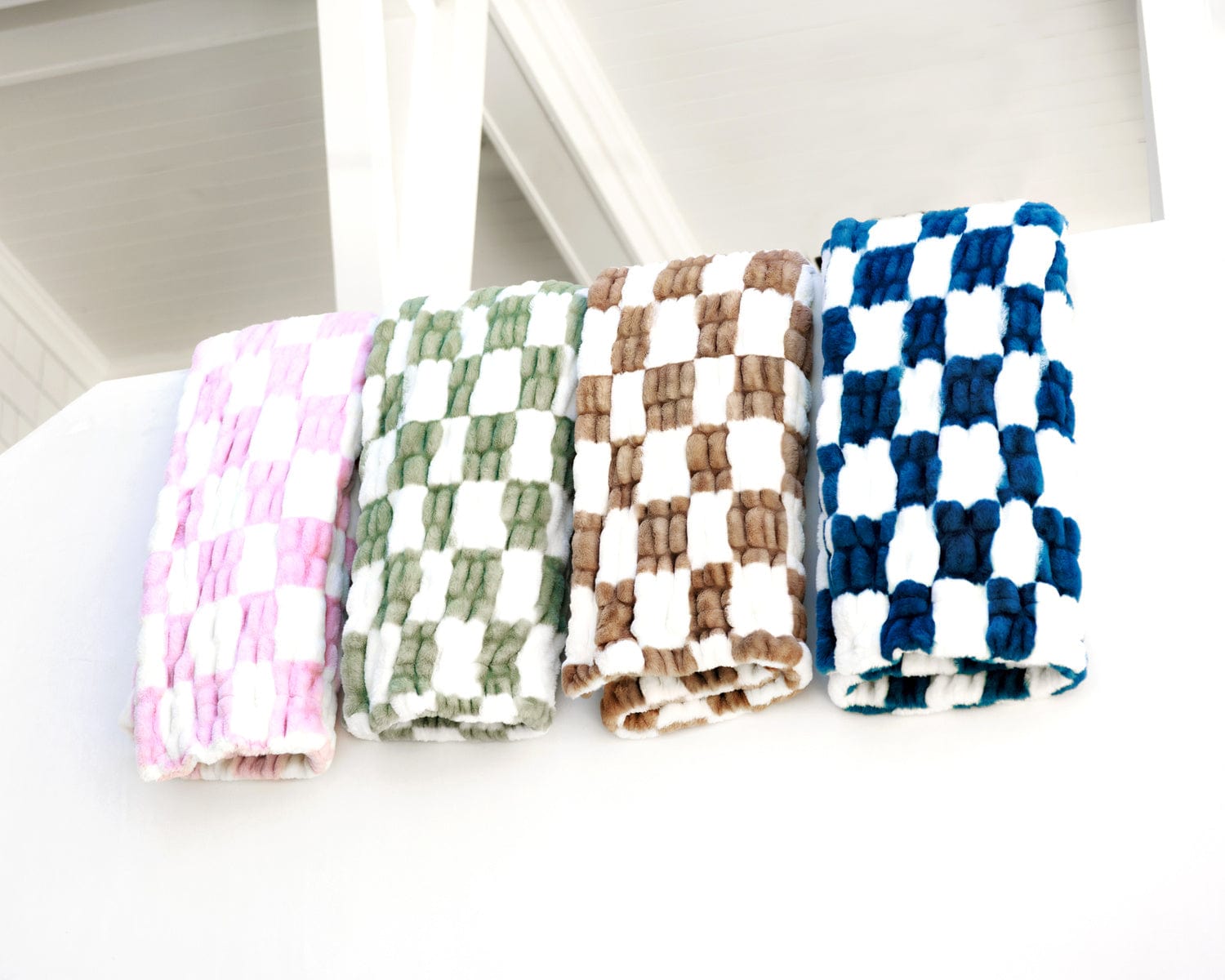 - Details: Cozy up with our Hugs Check Hunter Brown blanket, created in collaboration with influencer Devin Cordle. Featuring a charming checkered pattern of soft white and light brown squares, this plush, stretchy blanket captures Devin’s warm, down-to-earth aesthetic. With its versatile neutral tones and irresistible comfort, it’s the perfect piece to elevate your everyday lounging or add a cozy, curated touch to any space.