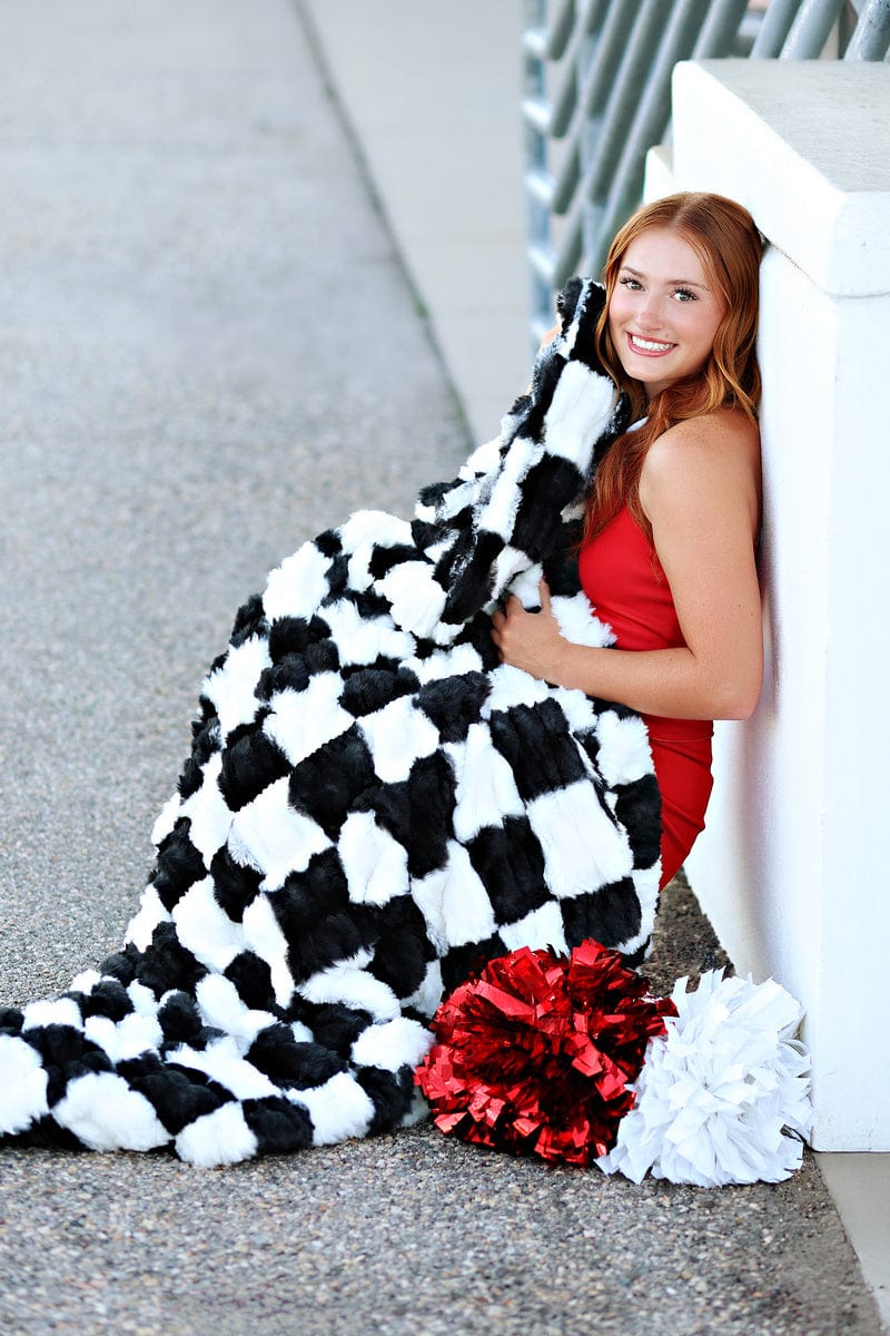 • Details: Hugs Black Licorice is a bold and modern checkered black plush blanket, crafted in deep black with a unique churro texture that adds striking dimension. Its stretchy softness offers a sleek yet cozy feel, making it a standout piece for snuggling or styling.