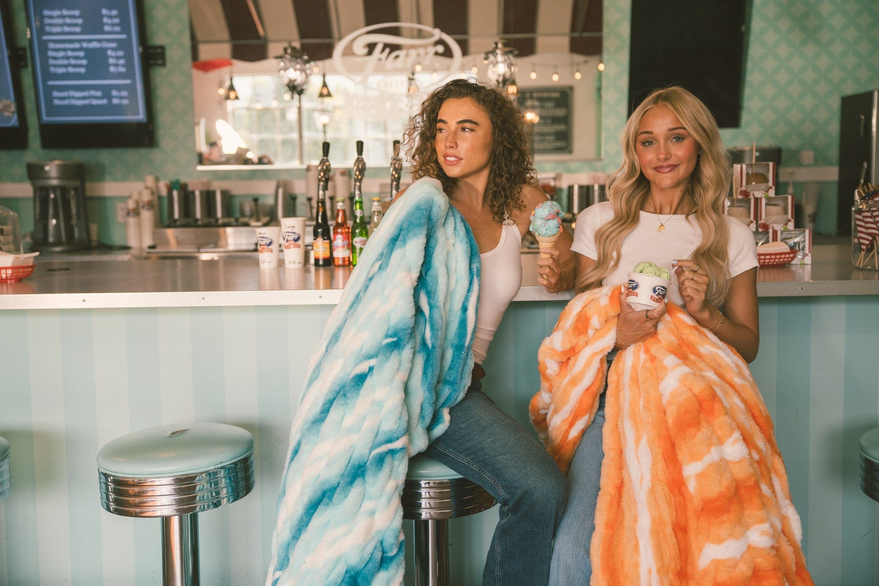 • Details: Wrap yourself in the warm glow of the Hugs Swirl Sunset Blanket. This plush, stretchy blanket features a beautiful variegated orange stripe pattern that flows throughout, creating a cozy and vibrant look. Soft, inviting, and full of personality, it’s perfect for relaxing in comfort and style.