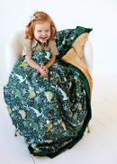 Unleash some prehistoric fun with the Little Dino – Green blanket. Featuring a playful collection of colorful dinosaurs on a rich dark green background, this blanket brings a whimsical touch to any child’s room. Soft, cozy, and full of adventure, it’s perfect for keeping little ones warm while sparking their imagination. This blanket is backed in a gold plush minky with a dark green satin ruffle.