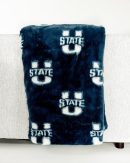 • Details: Show your Aggie spirit with the officially licensed Lush Utah State Aggies Blanket. This smooth, plush blanket features a rich blue background with the iconic Utah State logo printed in white throughout, creating a bold and timeless look. Perfect for game days, cozy nights in, or adding a touch of school pride to any space, it’s the ultimate blend of comfort and team spirit.