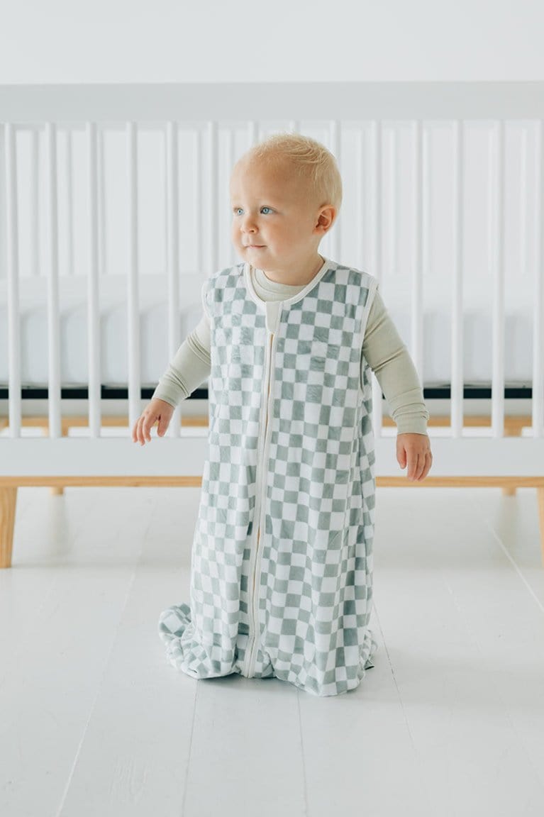 Our Wearable Minky Blanket was carefully designed to create a safe sleep alternative for infants. By replacing loose blankets in a crib, your little babe can sleep safe in the luxurious comfort of their Wearable Blanket. Including a bamboo/cotton lining and a Minky Couture polyester shell, your baby will stay safely covered and cozy all night long.