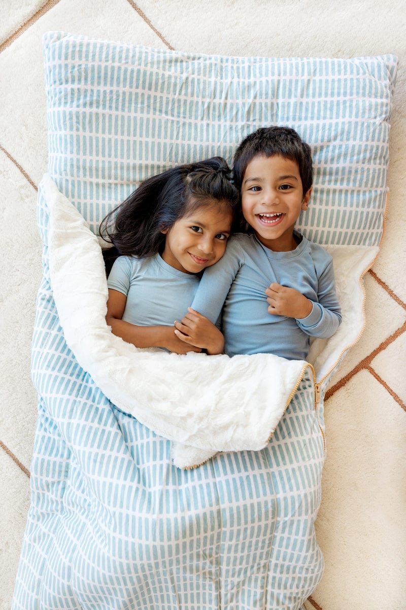 The Little Couture by Minky Couture Sleeping Bag is the perfect cuddly companion to keep you warm and cozy for slumber parties, movie nights and more! The Sleeping Bag includes a Minky Couture Sorbet plush lining and a plush minky shell. The built-in pillow makes it easy and functional to take on the go! The attached elastic straps provide a simple way to roll and store your bag. The Sleeping Bag comes in a protective draw-string carrying bag – that includes an adjustable strap for carrying and name tag for personalization.