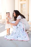 - Details: Embrace the beauty of nature with the Multi Wildflower Blanket, featuring a delicate array of multicolored watercolor flowers on a crisp white background. This artistic design adds a fresh and cheerful touch to any space. This blanket is backed in a cactus green plush minky with a blush pink satin ruffle.
