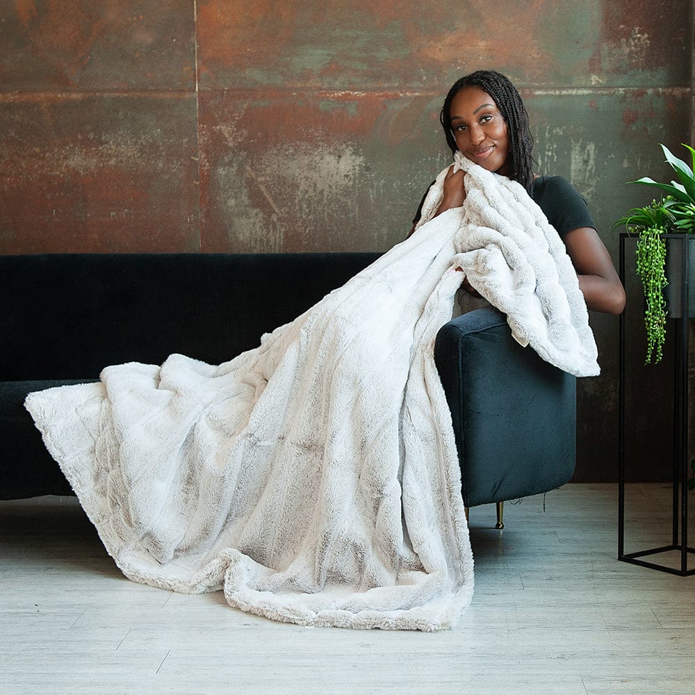 - Details: Wrap yourself in the cozy charm of our Polar Chia blanket. This ultra-soft plush blanket features a beautiful two-toned design, blending warm tan and soft white for a naturally calming look. Perfect for adding a touch of warmth and style to your favorite space.