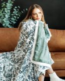 - Details: Embrace the beauty of nature with our wildflower blanket. A white background with dark teal flowers and complimentary greenery that captures the essence of wild, natural beauty. This blanket is backed in a mist green plush minky and sewn with a white satin ruffle.